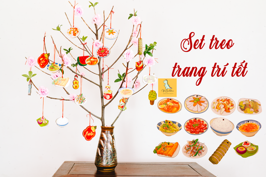 Combo 11 Lunar New Year wooden decoration sets| Com 11 set Đồ trang trí Tết bằng gỗ Wooden craft