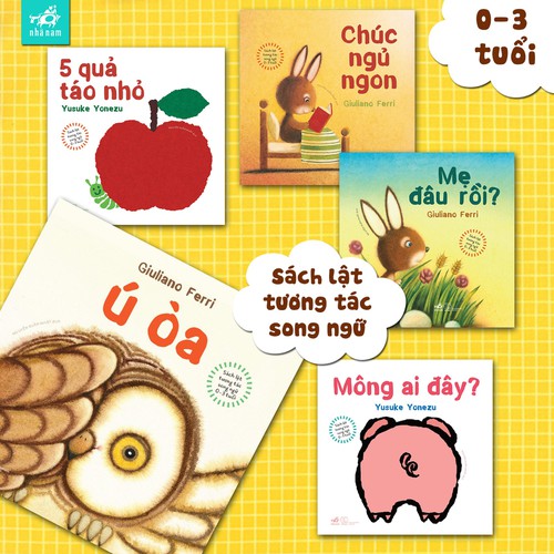 Combo 5 cuốn sách bìa cứng-tương tác song ngữ Chúc ngủ ngon, Ú Oà, Mẹ đâu rồi? 5 quả táo nhỏ